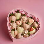 Клубника в шоколаде из бельгийского белого и розового шоколада.