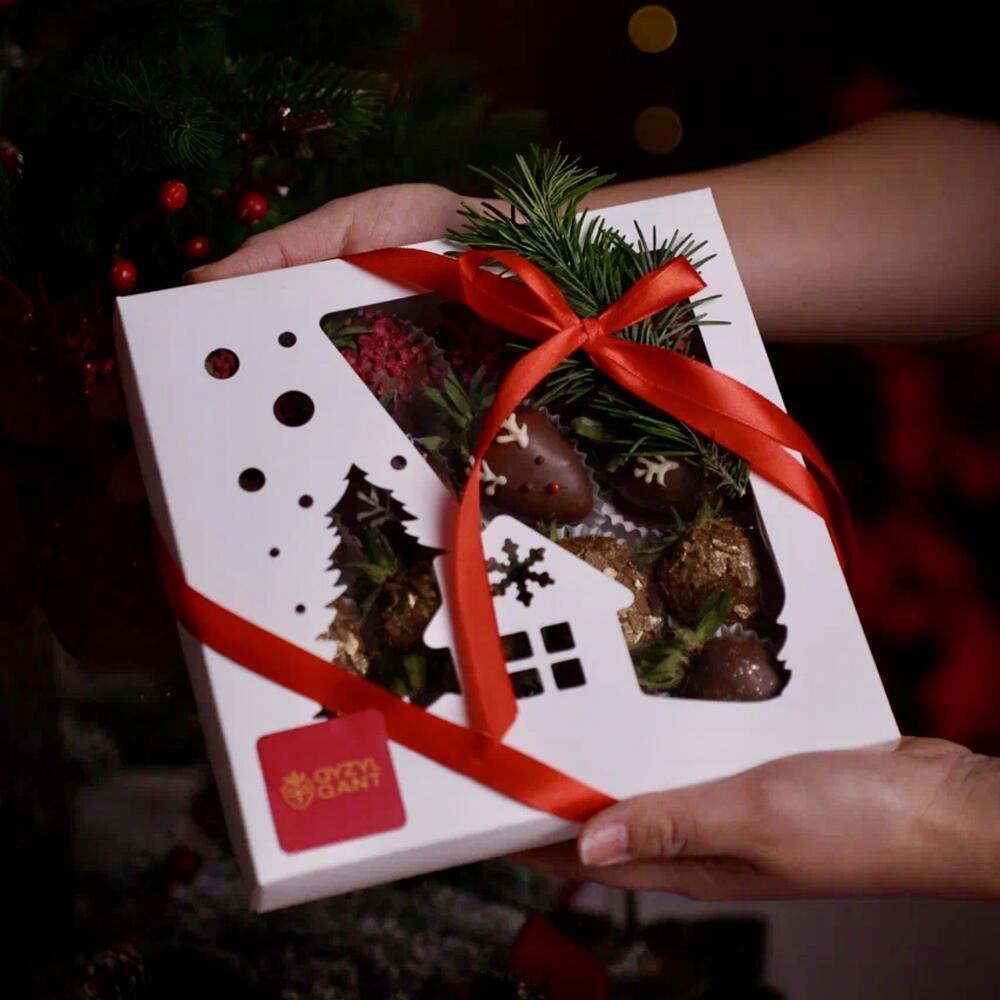 Новогодний набор из 16 клубник в молочном бельгийском шоколаде