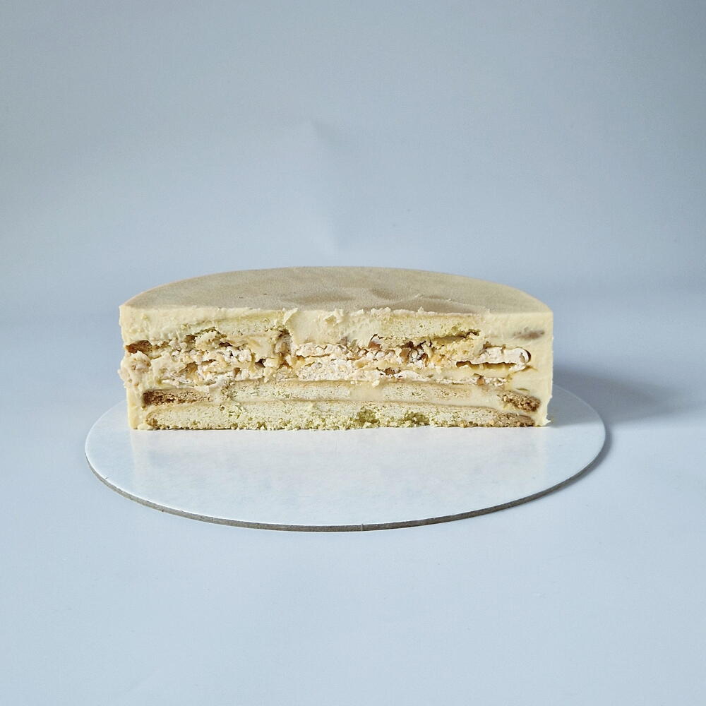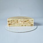 Состав: мука пшеничная, мука миндальная, яйца, сливки натуральные жирностью 33%, масло сливочное 82% жирности, орехи миндальные обжаренные, сахар, шоколад белый карамелизированный.