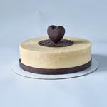 Песочные коржи, масляно-заварной крем с добавлением карамелизированного шоколада и сливок, хрустящее безе с орехами. Очень вкусный, рассыпчатый торт, тающий во рту. Такой вкус понятен многим. Не приторный, сбалансированный. Внешне похож на муссовый торт. Покрыт велюром.