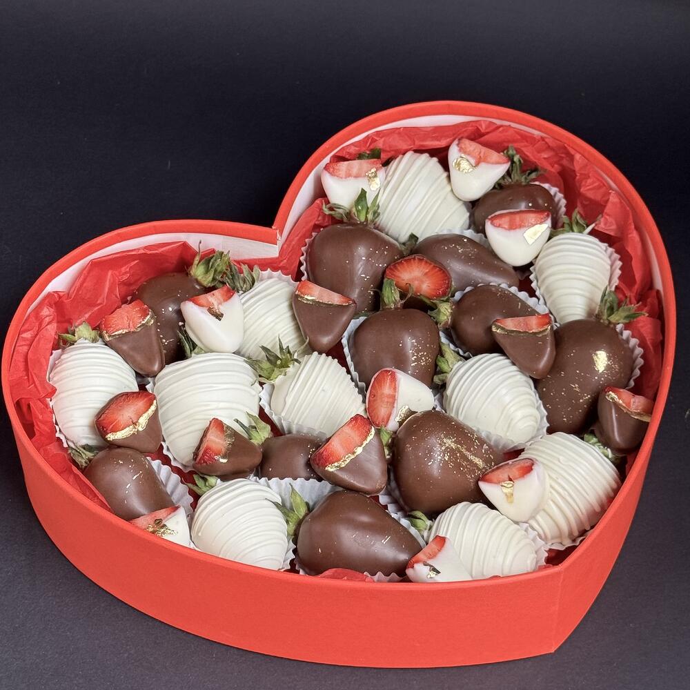 17 шт клубник в белом и молочном шоколаде Дополненные 15 шоколадными половинками клубник