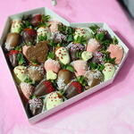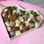 Набор клубники в бельгийском шоколаде в размере L Шоколадная открытка в виде сердца с надписью С любовью - в подарок Дарите любимым вкусные моменты не дожидаясь особого повода!