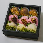 Набор из 9 крупных клубник, украшенный орехами пекан, дроблеными фисташками и вафельными крошками