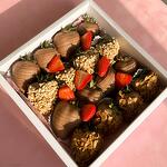 Ассорти из свежей клубники в бельгийском молочном шоколаде с хрустящим декором из орешков и кукурузных хлопьев. Идеально для любителей нежного вкуса с приятной текстурой.