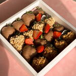 Ассорти из свежей клубники в бельгийском молочном шоколаде с хрустящим декором из орешков и кукурузных хлопьев. Идеально для любителей нежного вкуса с приятной текстурой. Важно: Наборы готовятся вручную из свежих продуктов, оформление и количество декора может немного отличаться.