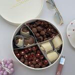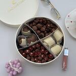 3 клубники в шоколаде; 3 бананов в шоколаде; 60 г малины в шоколаде; 60 г ежевики в шоколаде. • Шоколад бельгийский (молочный, белый, розовый) • Молочный шоколад: сахар, какао-масло, сухое молоко, какао тёртое, лецитин (эмульгатор), ванилин. • Белый шоколад: сахар, какао-масло, сухое молоко, лецитин (эмульгатор), ванилин.