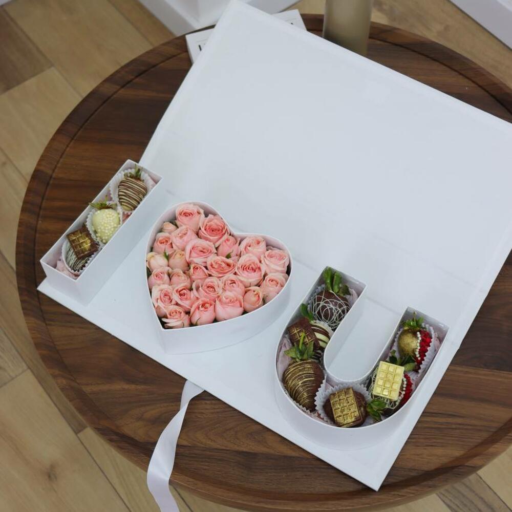 Сет клубник в шоколаде с живыми цветами. В сет входят: Спрей-розы, 4 шт. Клубника в шоколаде, 11 шт. (на фото 9, но вмещается 11) Коробка, 1 шт.