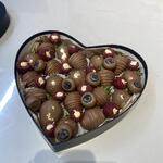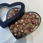 Изысканное трио ягод в премиальном шоколаде Callebaut. Клубника в молочном шоколаде, малина с начинкой из белого шоколада и голубика в молочном шоколаде — гармония вкусов, текстур и ароматов. Оформлено в стильной чёрной коробке-сердце — подарок, который невозможно забыть.