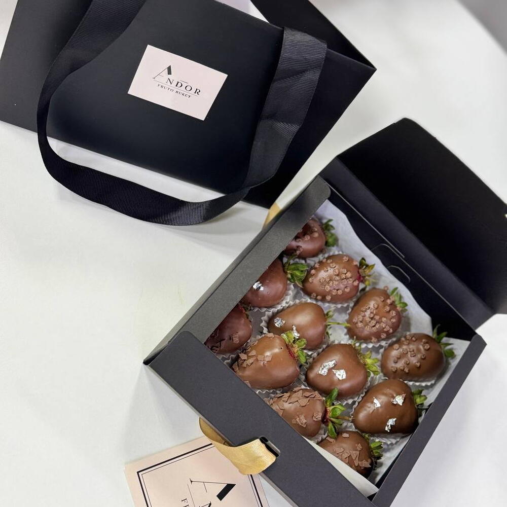 Роскошный подарок для особенного человека. 12 свежих,отборных ягод, покрытых нежным молочным шоколадом. Клубника украшена воздушным рисом, тёртым шоколадом и лепестками потали. Десерт изготовлен вручную из качественного шоколада и свежих ингредиентов, а стильная фирменная упаковка делает этот набор идеальным подарком на любой случай: день рождение, 8 марта, годовщину или просто знак внимания без повода