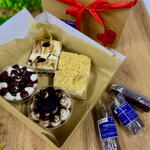 Набор сладостей для уютного чаепития. В состав входят 2 нежных пирожных, 3 классические картошки и 2 порции воздушных трайфлов. Отличный вариант, чтобы побаловать себя или порадовать близких.