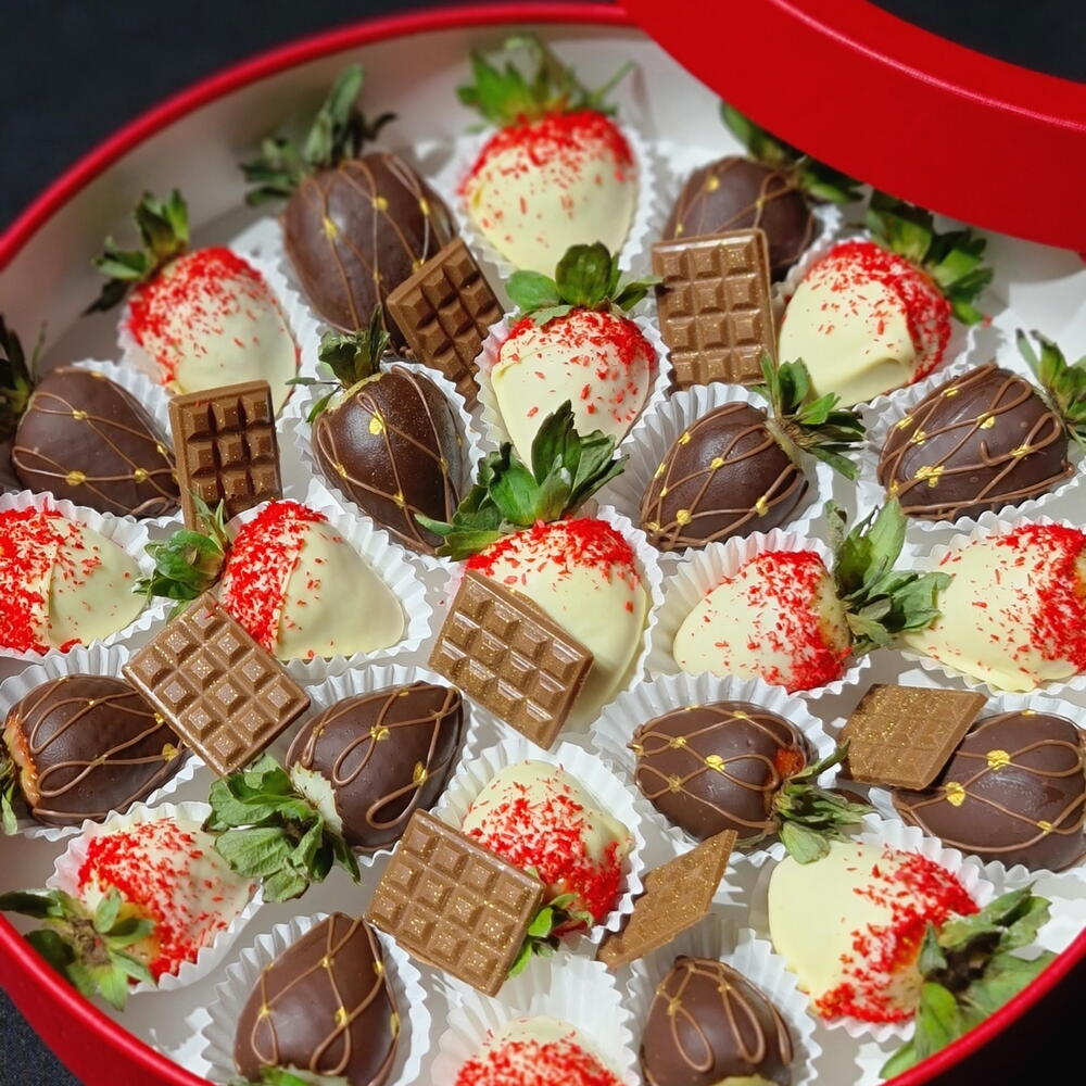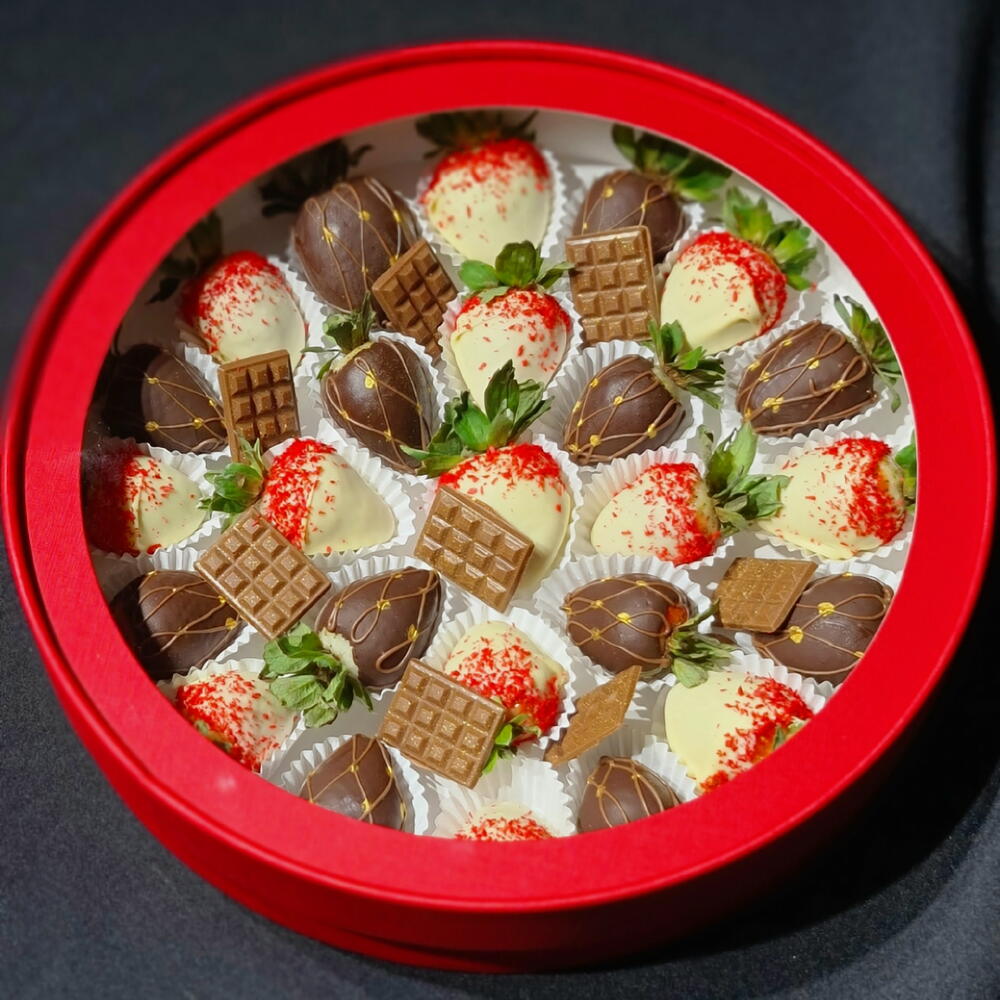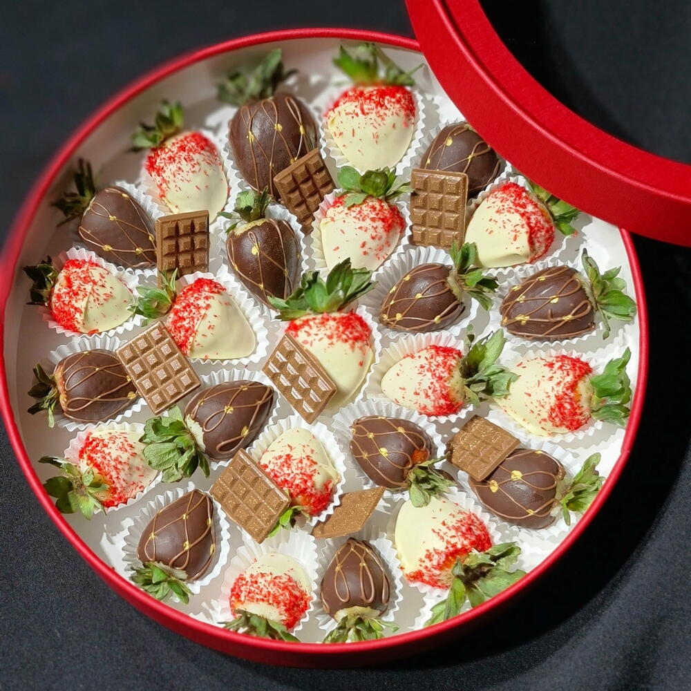 Шикарная праздничная коробка размера L(30см) с клубникой в бельгийском шоколаде Callebaut. Впечатляйте, дарите праздник родным и любимым.