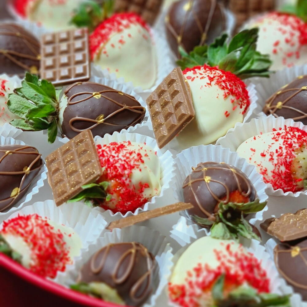 Клубника в белом бельгийском шоколаде Callebaut, украшенная кокосовой стружкой. Клубника в тёмном бельгийском шоколаде Callebaut. Мини плитки ручной работы из молочного бельгийского шоколада Callebaut.