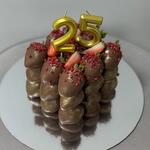 Торт из клубники в молочном шоколаде callebaut, с сублимированной малиной, свечки на выбор