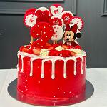 Торт в стиле «Микки Маус» с красным оформлением обычно представляет собой яркое и праздничное кондитерское изделие, стилизованное под знаменитого персонажа Disney.