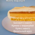 Манго пюре, маракуйя пюре, сливки 33%, масло 82%, мука, рисовая мука, белый бельгийский шоколад, яйца, миндальная мука, пектин, желатин халал, глюкозный сироп, сахар.