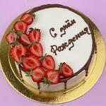 Торт с дизайном «День Рождения» и Вашей надписью ❤️✨ Начинка может быть: 🍬молочная девочка 🍬шоко-банан 🍬сникерс 🍬вупи-пай По умолчанию начинка молочная девочка По всем вопросам пишите в чат, ответим в течение 5 минут в рабочее время 🤗