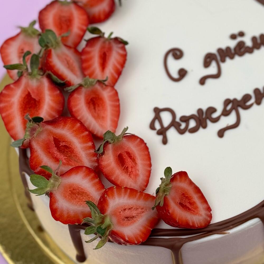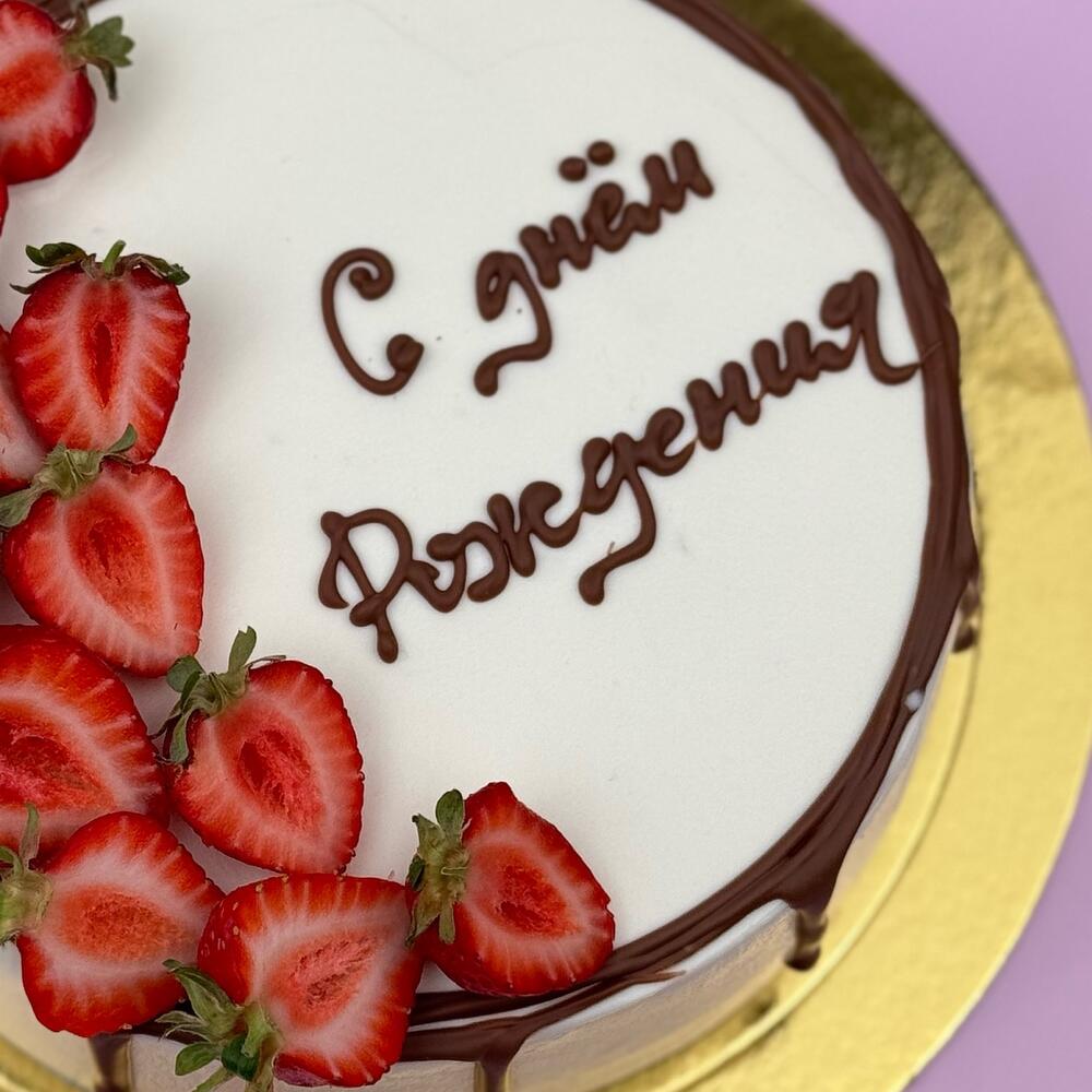 Торт с дизайном «День Рождения» и Вашей надписью ❤️✨ Начинка может быть: 🍬молочная девочка 🍬шоко-банан 🍬сникерс 🍬вупи-пай По умолчанию начинка молочная девочка По всем вопросам пишите в чат, ответим в течение 5 минут в рабочее время 🤗