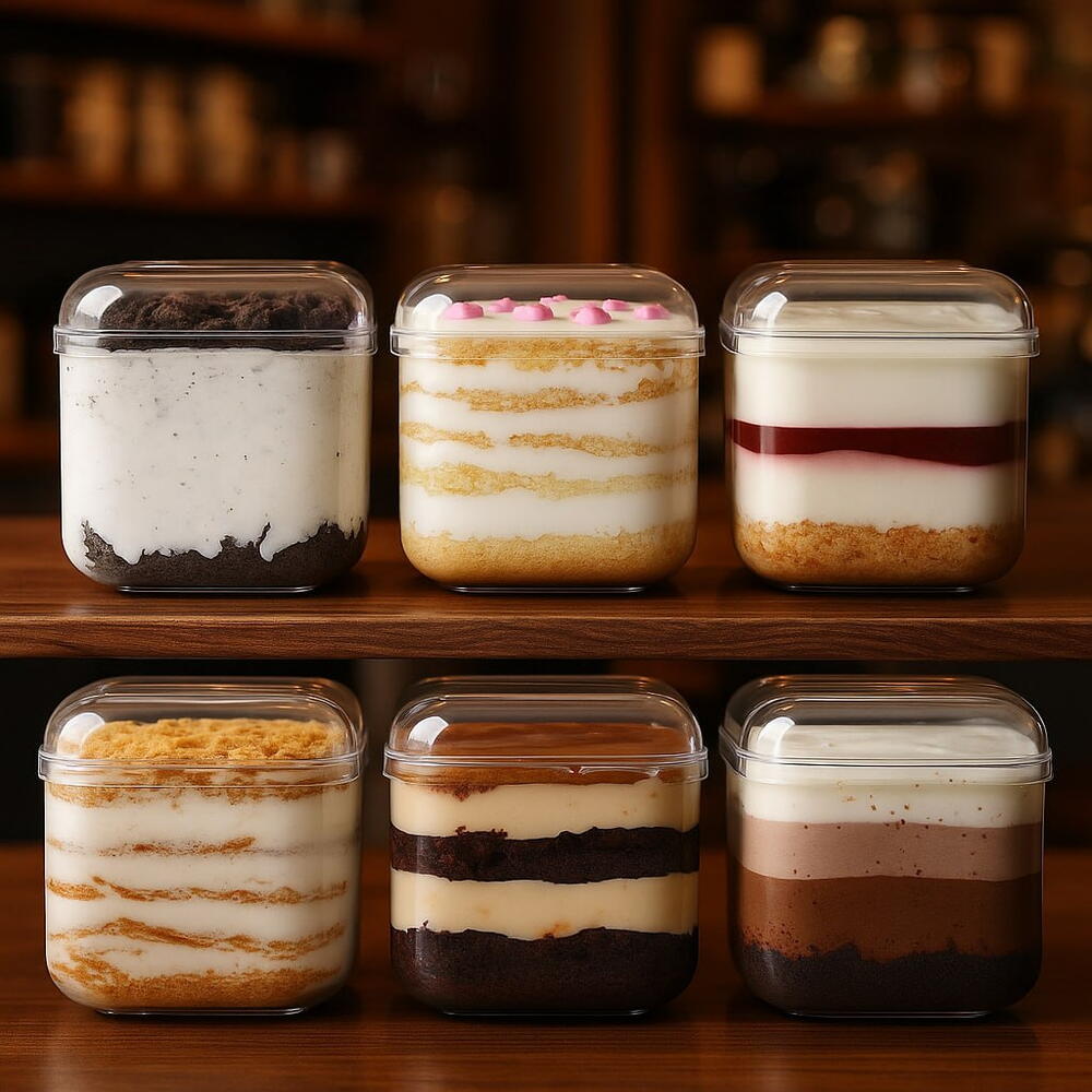 Стильная подборка трайфл в прозрачных квадратных контейнерах. Каждый десерт выглядит аккуратно, слоями выложены крем, бисквит или другие начинки, что создаёт очень аппетитный и привлекательный вид. Вы можете расписать каждый трайфл и создать композицию из любого количества. В стоимость включен дизайн и трайфл 1шт. Идеальный и уникальный подарок