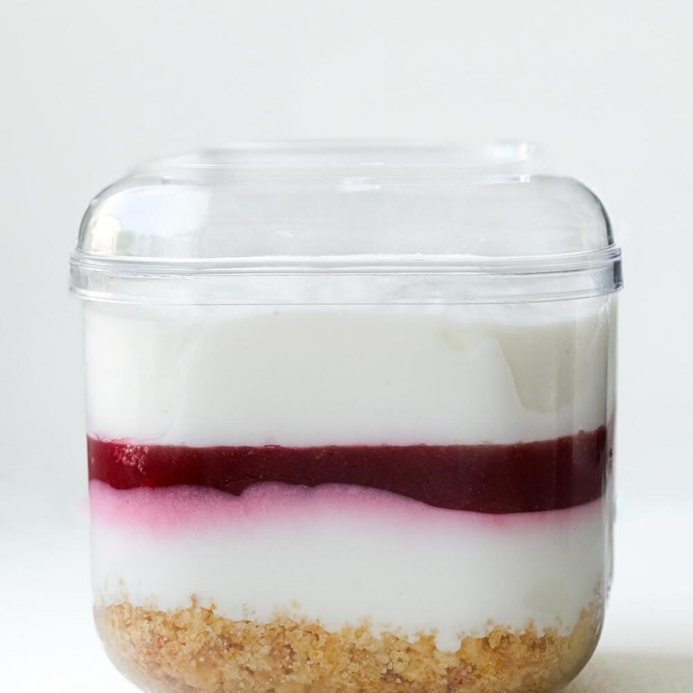 овсяная мука, яйца, растительный йогурт или греческий йогурт, натуральный подсластитель (стевия/эритритол), творожный крем, ягодное пюре без сахара, ваниль, разрыхлитель.