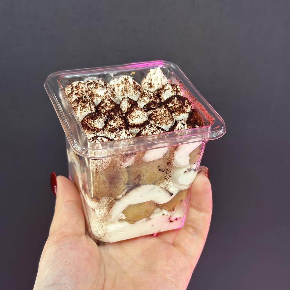 Элегантный десерт, в котором нежные слои кофейного бисквита гармонично сочетаются с маскарпоне и нотками амаретто, обеспечивая изысканное удовольствие с каждой ложечкой.