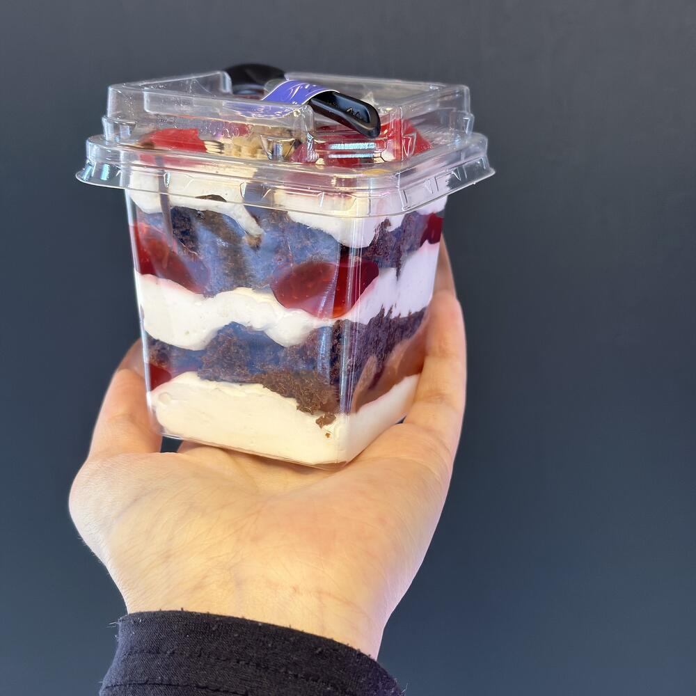 Погрузитесь в мир нежного сочетания текстур и вкусов с нашим трайфлом. Это многослойное удовольствие из воздушного бисквита, свежих фруктов и легкого крема подарит вам истинное наслаждение. Идеально подходит как для себя, так и в качестве стильного подарка, который точно удивит.