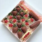 1. Клубника в шоколаде — 14 штук – 7 — в белом шоколаде с красной посыпкой (сублимированная крошка ягод) – 7 — в молочном шоколаде, украшены полосками шоколада (без посыпки) 2. Десерт на палочке (кейк-попс) — 2 штуки – 1 — в белом шоколаде с красной посыпкой (сублимированная ягодная крошка) – 1 — в молочном шоколаде, украшен полосками шоколада (без посыпки) Посыпка:• Красная сублимированная ягодная крошка (например, малина или клубника) Состав шоколада:• Белый шоколад: сахар, какао-масло, сухое молоко, эмульгатор лецитин, натуральный ванилин • Молочный шоколад: сахар, какао-масло, сухое молоко, какао тертое, эмульгатор лецитин, ванилин
