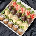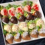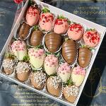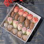 Клубника покрытая бельгийским белым и молочным шоколадом. Украшена кокосовой стружкой и воздушным рисом. Упакована в картонную коробку с крышкой из прозрачного пластика. К заказу можно оформить открытку с поздравлениями.