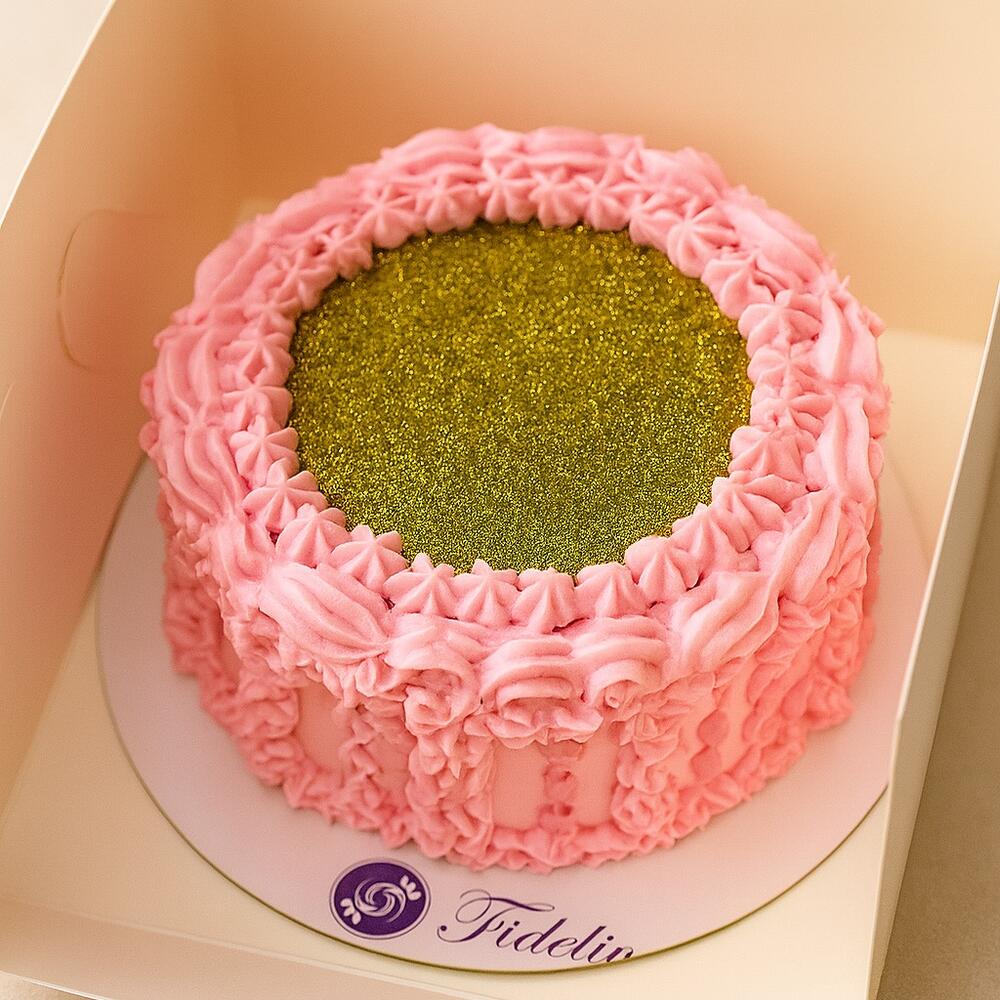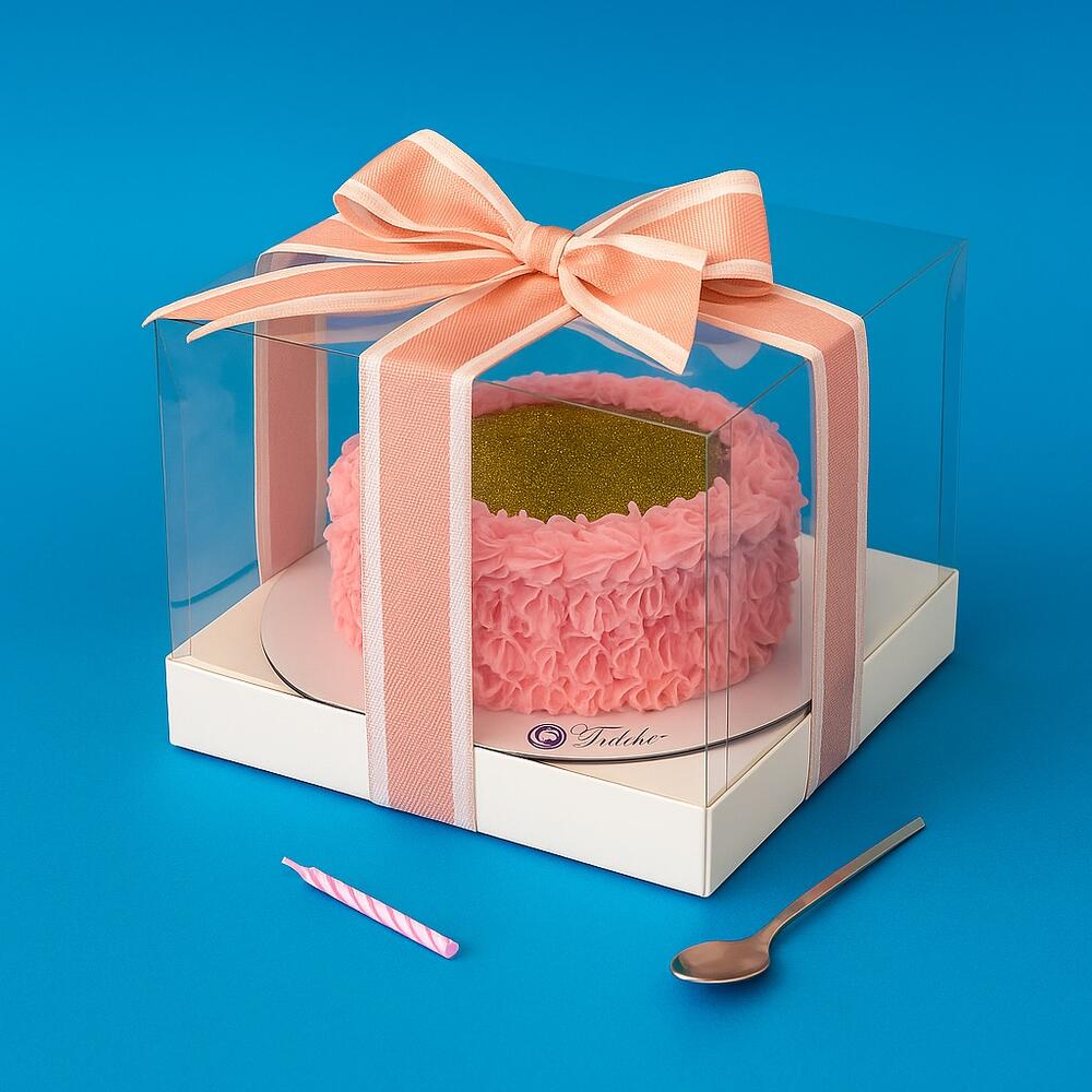 Маленький, но особенный тортик в розовом креме с золотым акцентом сверху. Идеально подойдёт как милый подарок на день рождения, романтический сюрприз или просто чтобы порадовать близкого человека. Упакован в прозрачную коробочку с бантом, внутри — свеча и ложечка для удобства.