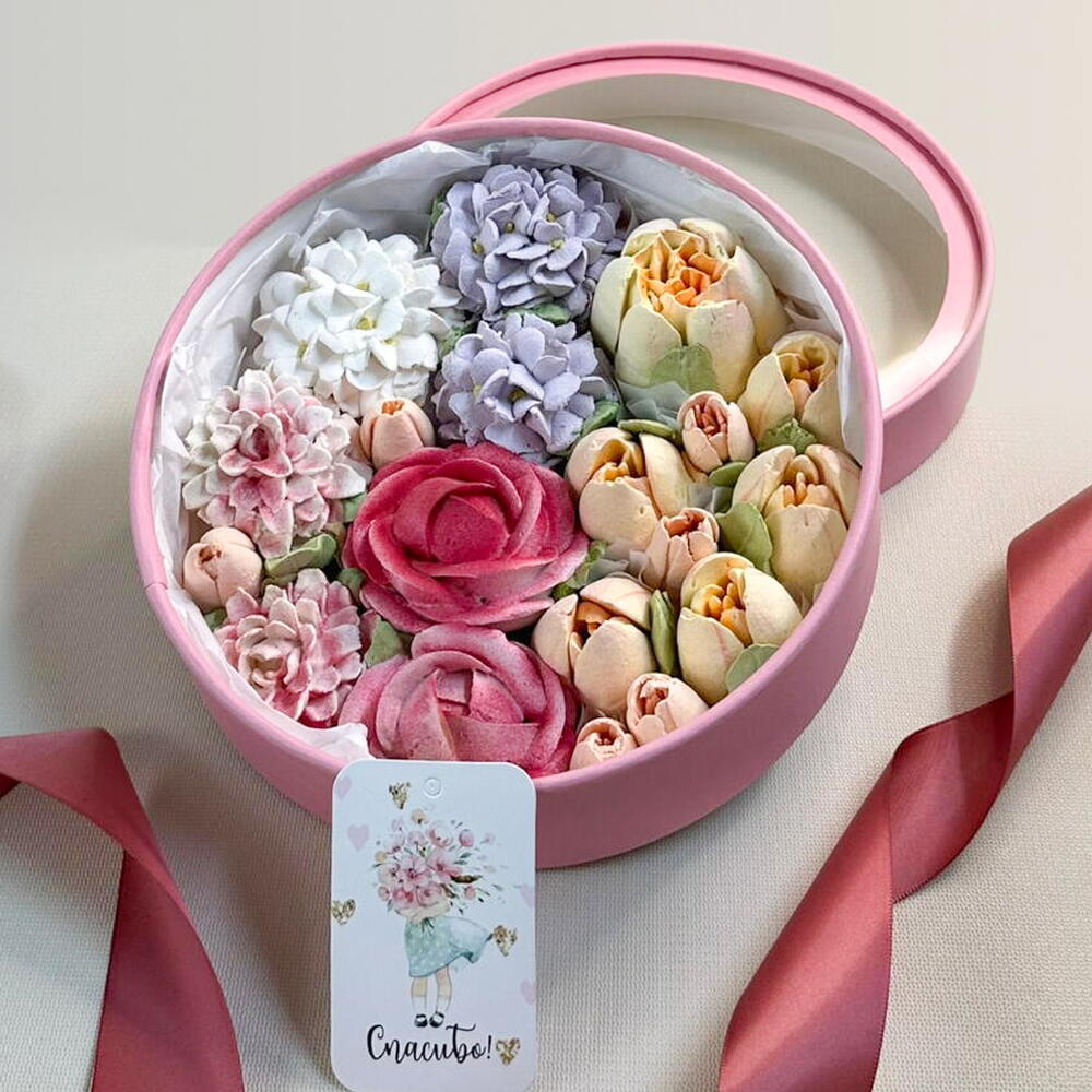 Зефирные цветы в шляпной коробке - L