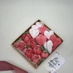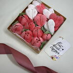 Яблочное пюре, Сахар, Агар-агар, Яичный белок, Лимонная кислота 7 зефирных тюльпанов 9 зефирных сердец Коробка с подарочным оформлением