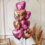 Фольгированные шары в виде сердца - 7 шт. Хромированные шары серебро -3 шт. Цвет: розовое золото