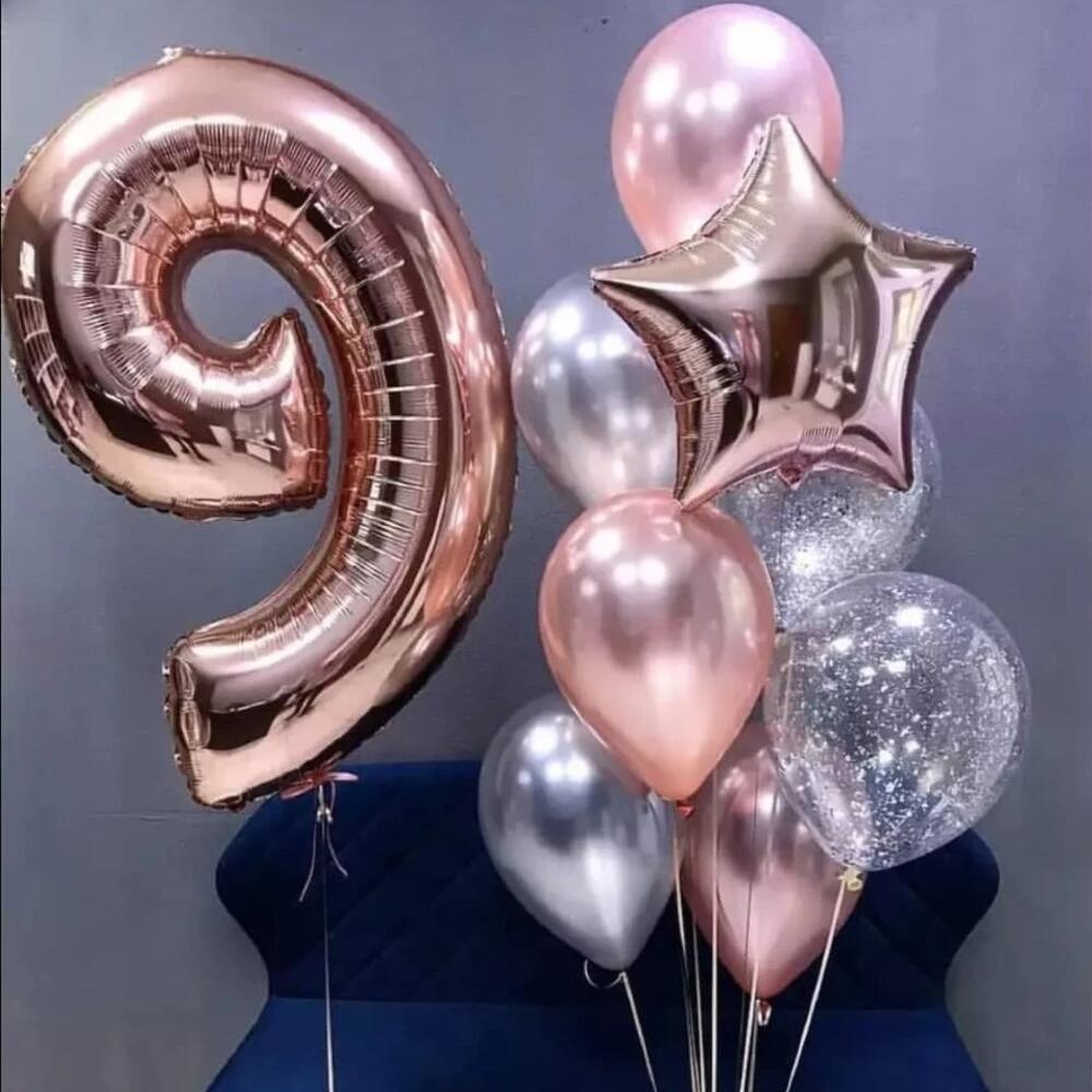 Шары латекс- 5шт Конфетти серебро. Шары фольгированные -1шт Цифра фольгированная. Цифру можно заменить на любую другую - 1шт. Цветовая гамма: розовый и серебро