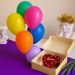 Нежный бенто-тортик в форме сердца с надписью «love» и набор из 6 ярких гелиевых шаров. Всё, что нужно для мини-праздника — в одной коробке! Шарики украсят интерьер, а торт порадует вкусом.