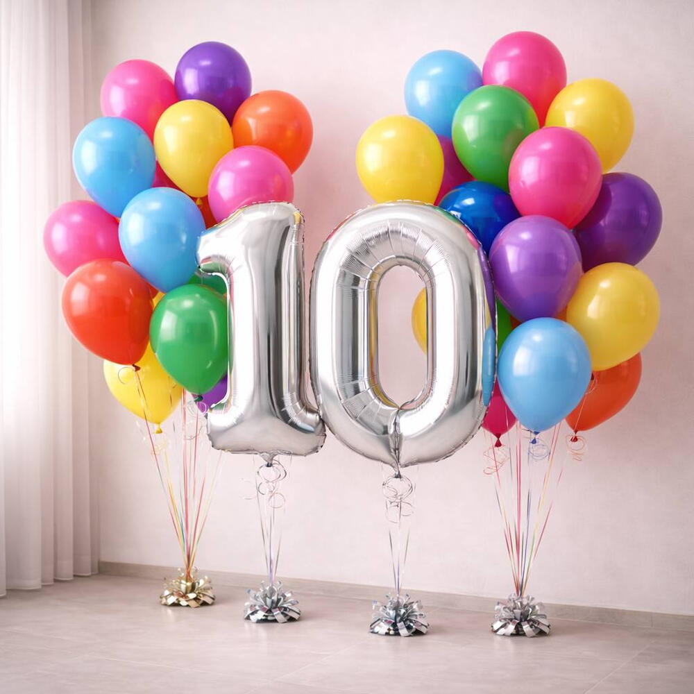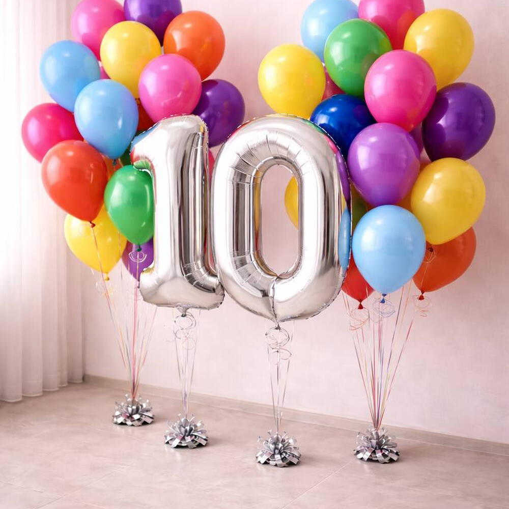 Набор воздушных шаров 2 фольгированные цифры + 40 латексных шаров — эффектное и объёмное оформление для яркого праздника 🎈✨ Идеально подойдёт для: • Дня рождения — подчеркните возраст именинника крупными цифрами и создайте масштабную фотозону. • Юбилея — красиво выделите важную дату и добавьте торжественности. • Годовщины — обозначьте значимое число и оформите романтичную атмосферу. • Корпоративного мероприятия — подчеркните дату компании или важный показатель. • Выпускного — эффектно обозначьте год и создайте праздничный фон для фотографий. В набор входит: — 2 фольгированные цифры — 40 латексных воздушных шаров 💰 Цена указана за весь комплект (42 шара). Оттенки шаров могут незначительно отличаться — при необходимости наша команда обязательно свяжется с вами для уточнения деталей. В стоимость включена обработка High-Float для более длительного полёта латексных шаров, а также аккуратная упаковка для удобной транспортировки.