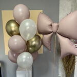 В наборе 10 Шаров латекс, надутых гелием . 1 шар фольга Бант . ( летают )