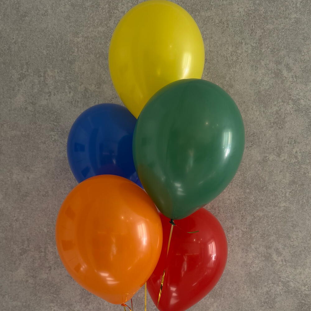 Фонтан из 5 розноцветных обычных шаров, с наполнением гелия. Цвета можно менять.