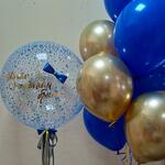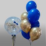 Праздничный сет из прозрачного шара-гиганта с конфетти и фонтана из 7 шаров. Универсален, подойдёт мужчине, женщине, ребенку. Цветовое решение композиции, надпись и оформление шара гиганта может быть согласовано с заказчиком.