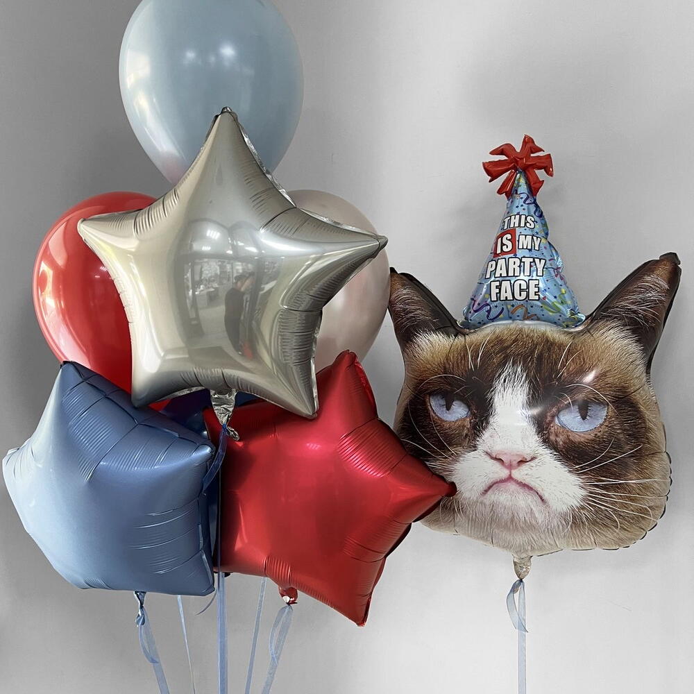 Недовольный кот 3 звезды и 4 латексных шара Набор подойдет на любое мероприятие для Вашего близкого человека