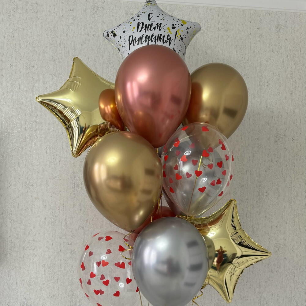 Набор состоит из: Звезда фольга 3 Хром шары 6 Шар прозрачный с сердцем 2 Подойдет для поздравления с днем рождения. Подпишем и положим открытку в подарок 🎁