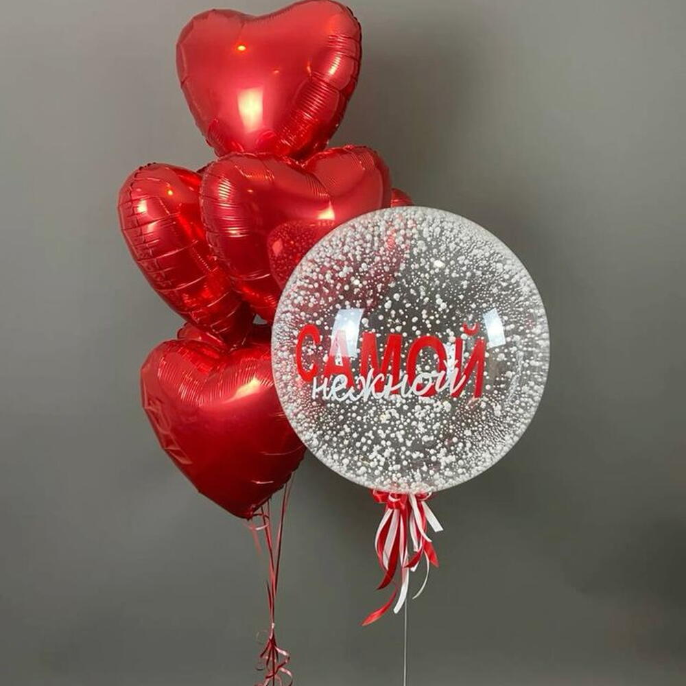 Подарочный сет из 5 фольгированных красных сердец и полимерного шара 24 с пенопластом и наклейкой. Подойдет для любых романтических событий, годовщин, юбилеев, дней рождения