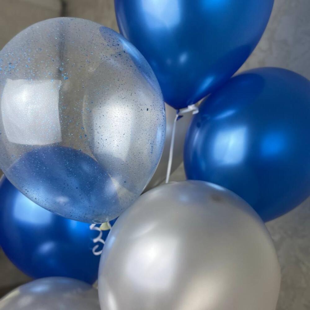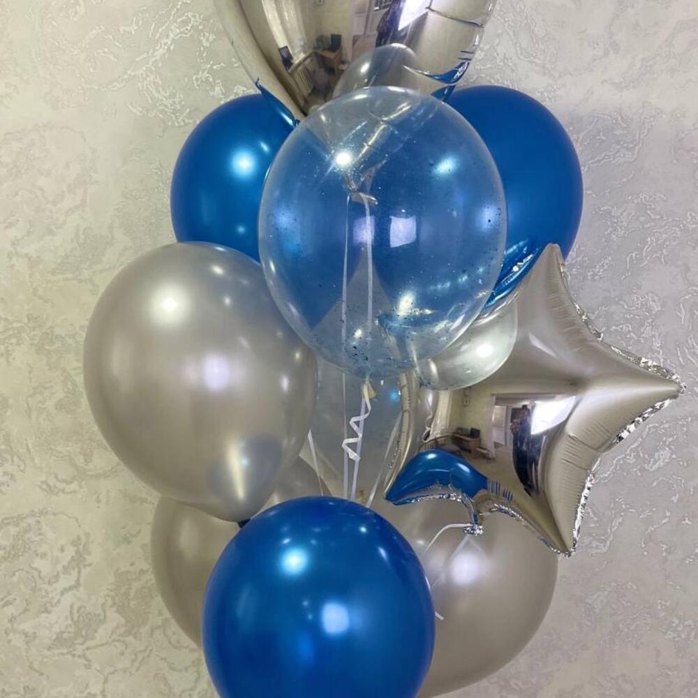 В наборе 10 Шаров : сердце фольга 1 шт , звезда фольга 1 шт , конфетти латекс 2 шт , латекс хром 6 шт . Шары надутые гелием - летают .