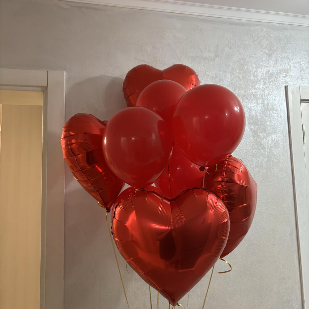 Набор воздушных шариков: 4 фольгированных сердечек и 5 латексных