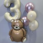 Цифра белый песок ( на выбор ) Мишка 2 шара белый песок 2 розовых хром