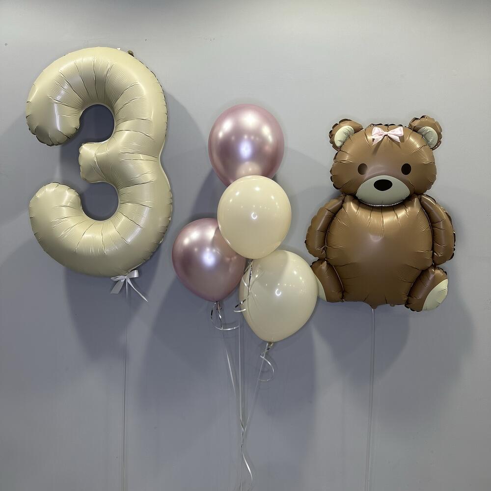 Цифра белый песок ( на выбор ) Мишка 2 шара белый песок 2 розовых хром