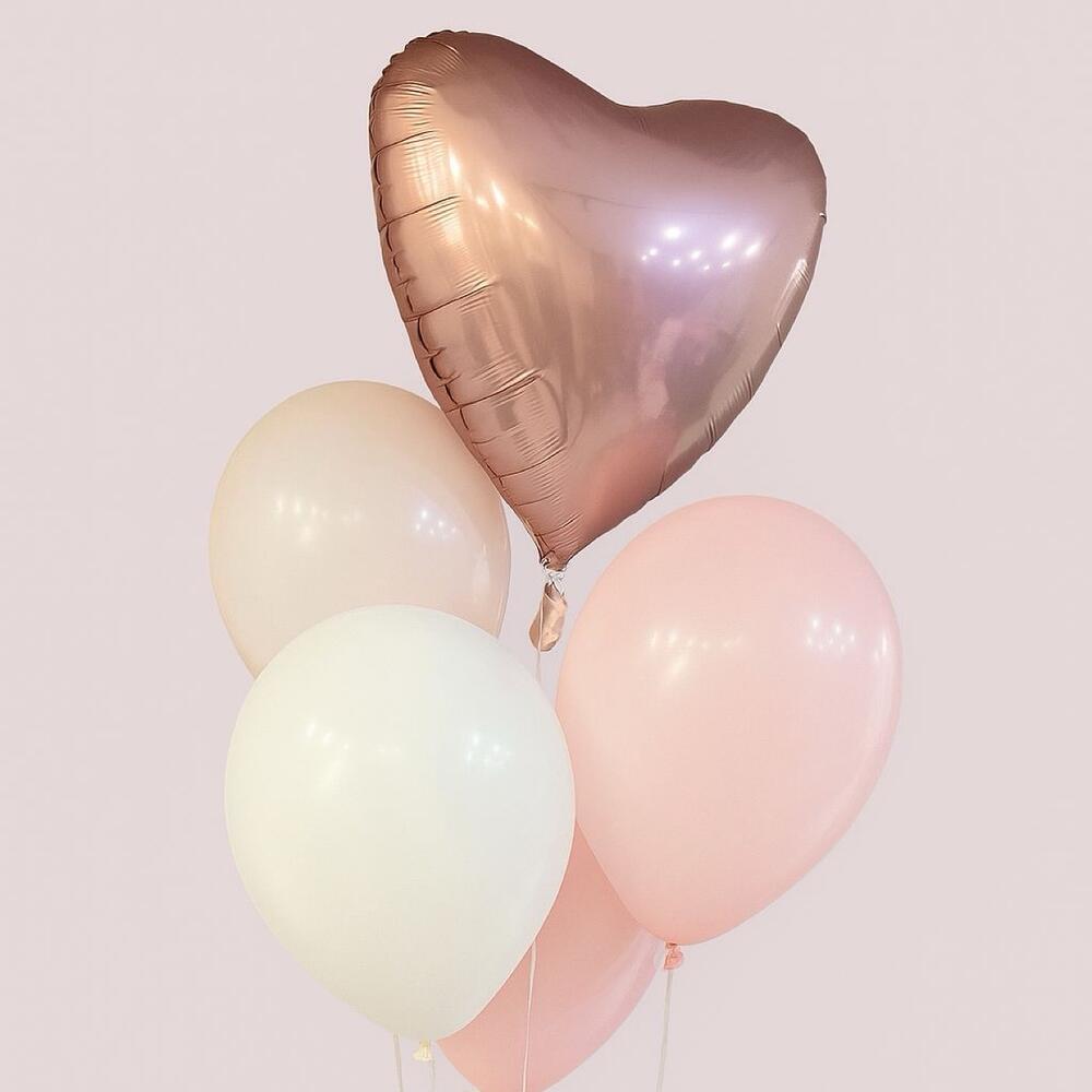 Нежный фонтан из Шаров - в составе 4 обычных шара и один фольгированный в форме сердца. Все шарики мы дуем сами, тщательно проверяем, и только после этого отправляем к вам. Перевозим по всем правилам, чтобы они сохраняли форму и радовали вас дольше.