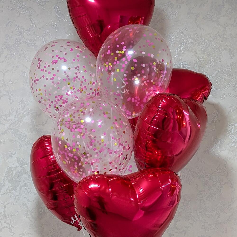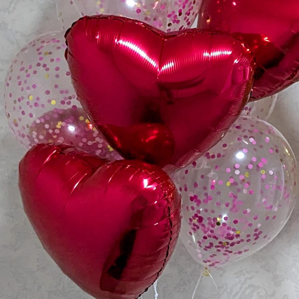 Сет: Красные фольгированные сердца и прозрачные шары с конфетти