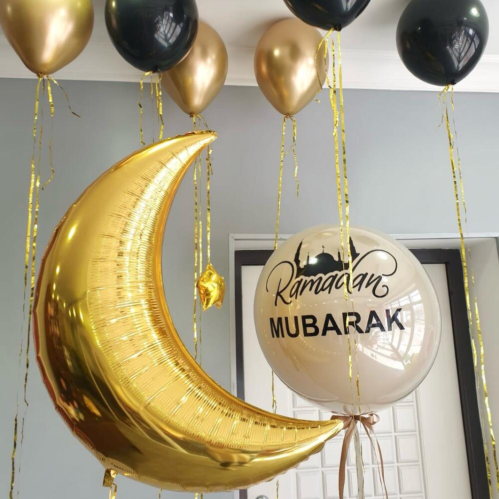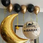Шар 24’ с надписью Луна со звездой 3 черных шара с дождиком 4 золото с дождиком