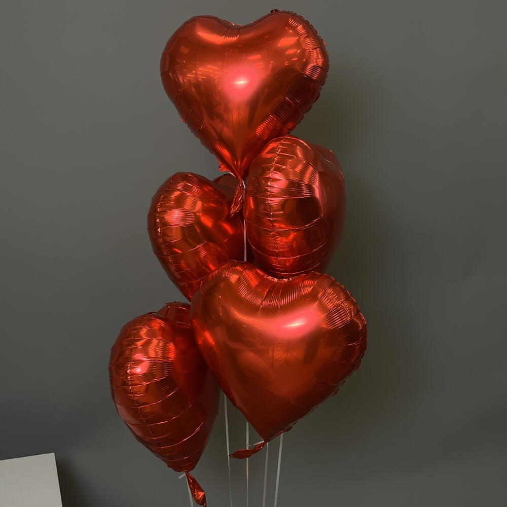 Набор из 5 воздушных шаров в форме сердца. Отличное дополнение к букету или основному подарку на 14 февраля, свидание или фотосессию.