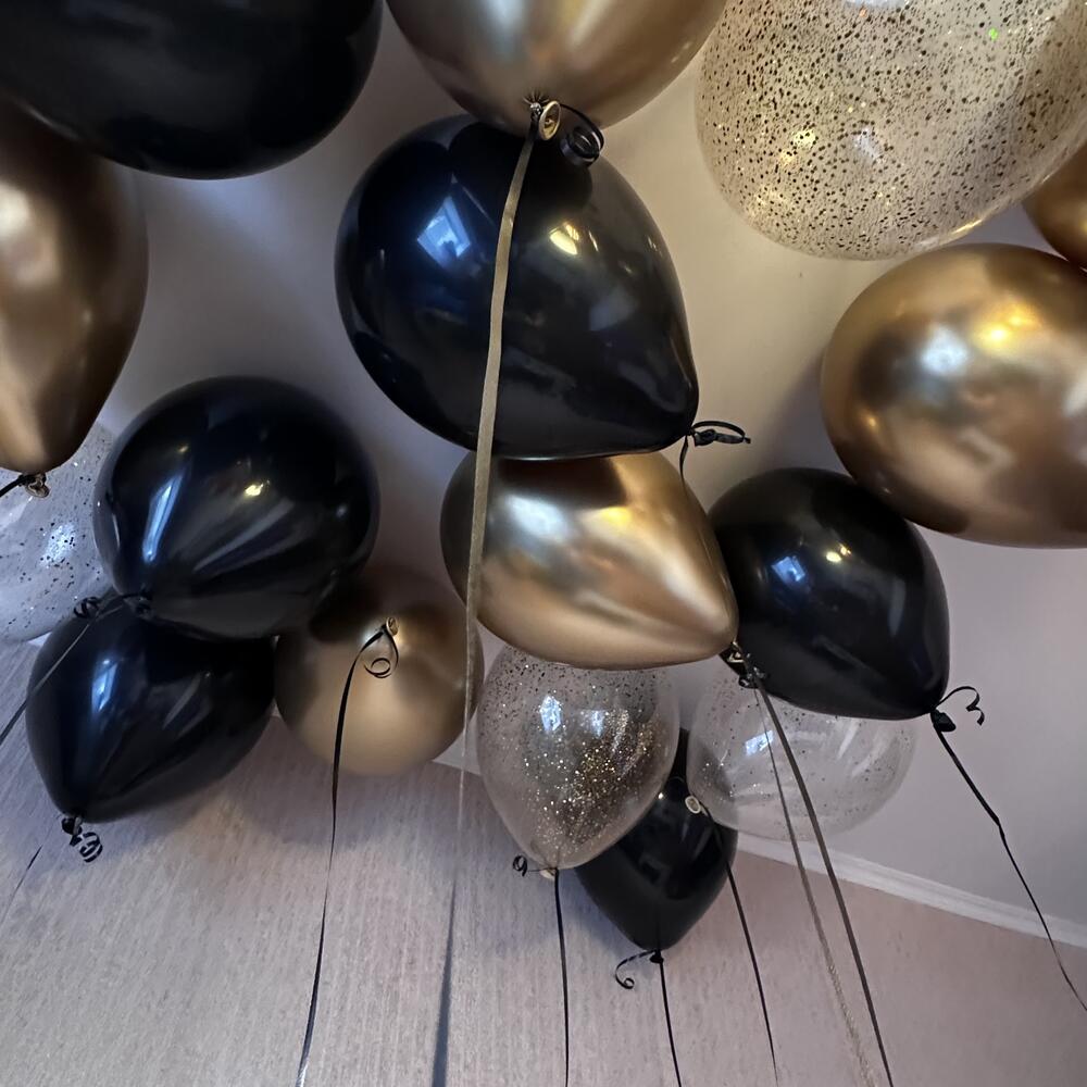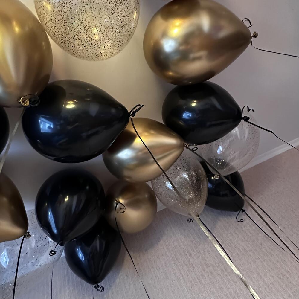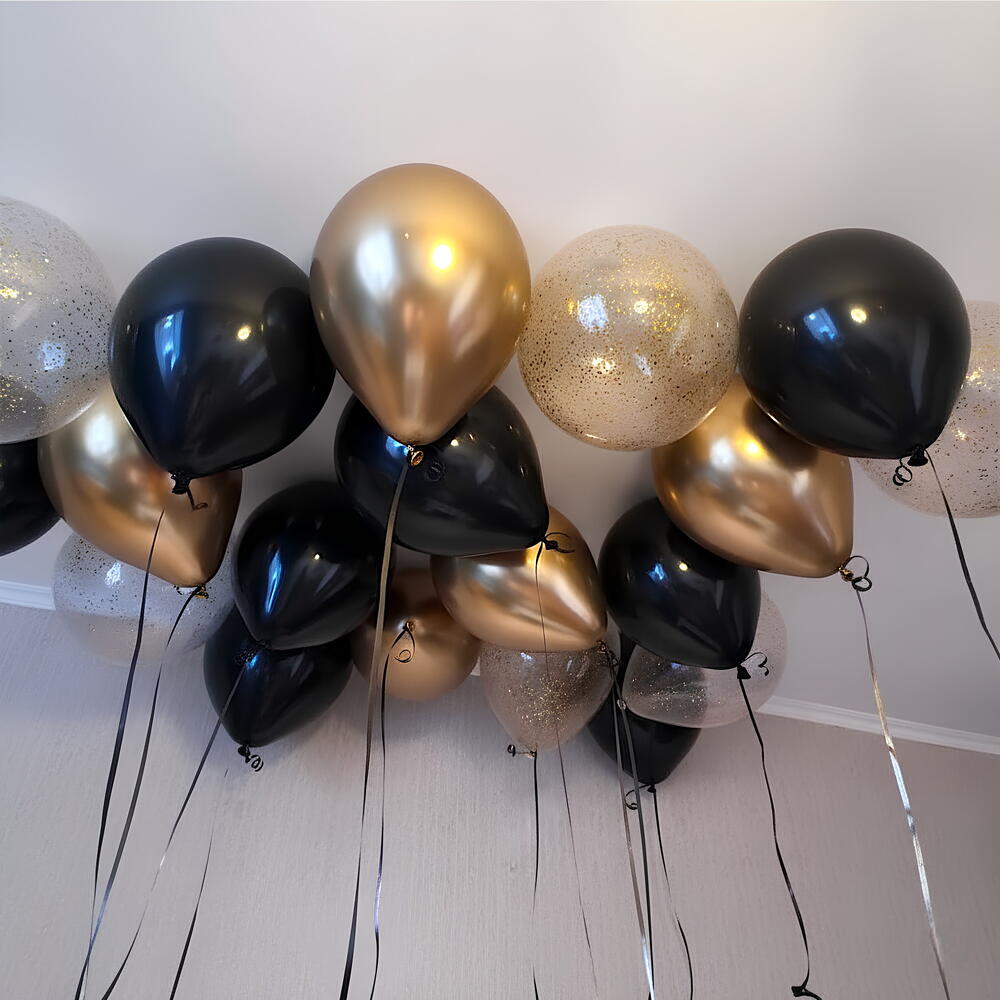 Элегантный набор из 20 воздушных шаров в роскошной цветовой гамме — 6 золотых хром, 6 прозрачных с золотым конфетти и 8 чёрных. Идеальное украшение для дня рождения, корпоратива, юбилея или вечеринки в стиле luxury. Шары создают атмосферу праздника, стиля и блеска, подчёркивая изысканный вкус оформления.