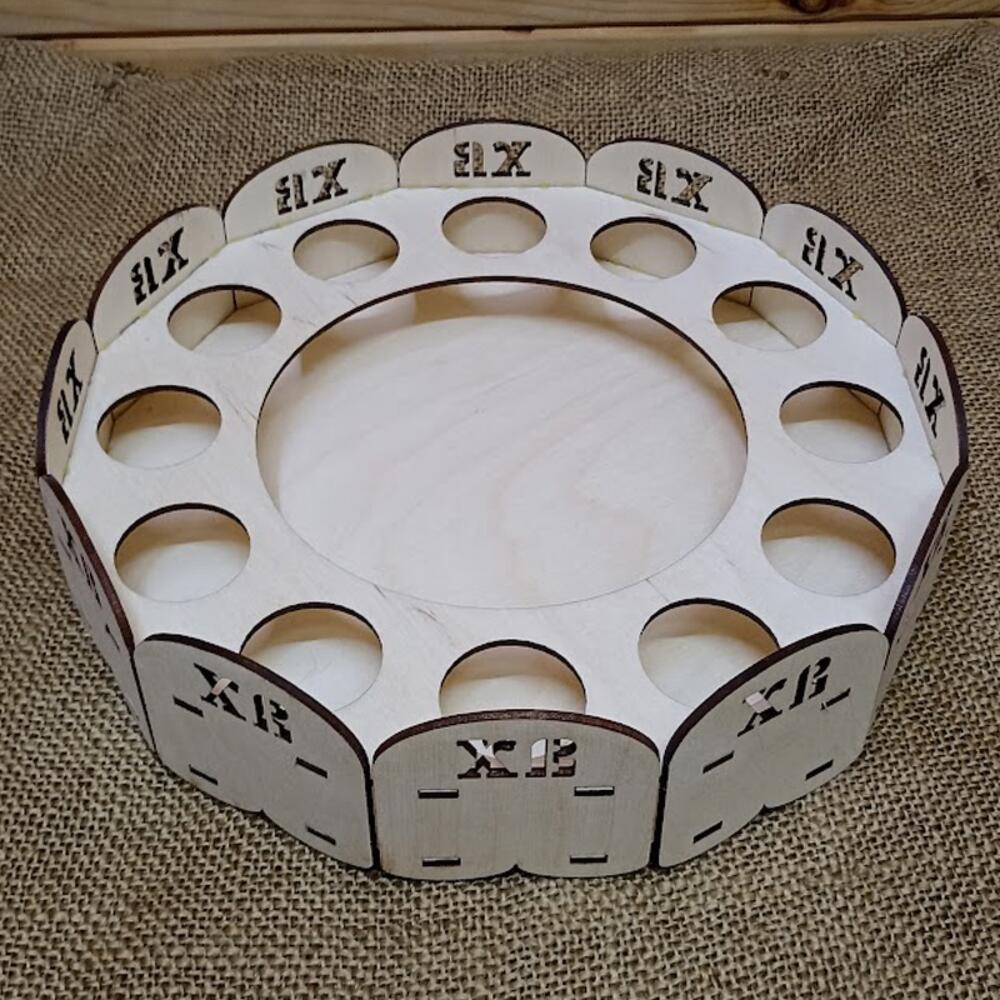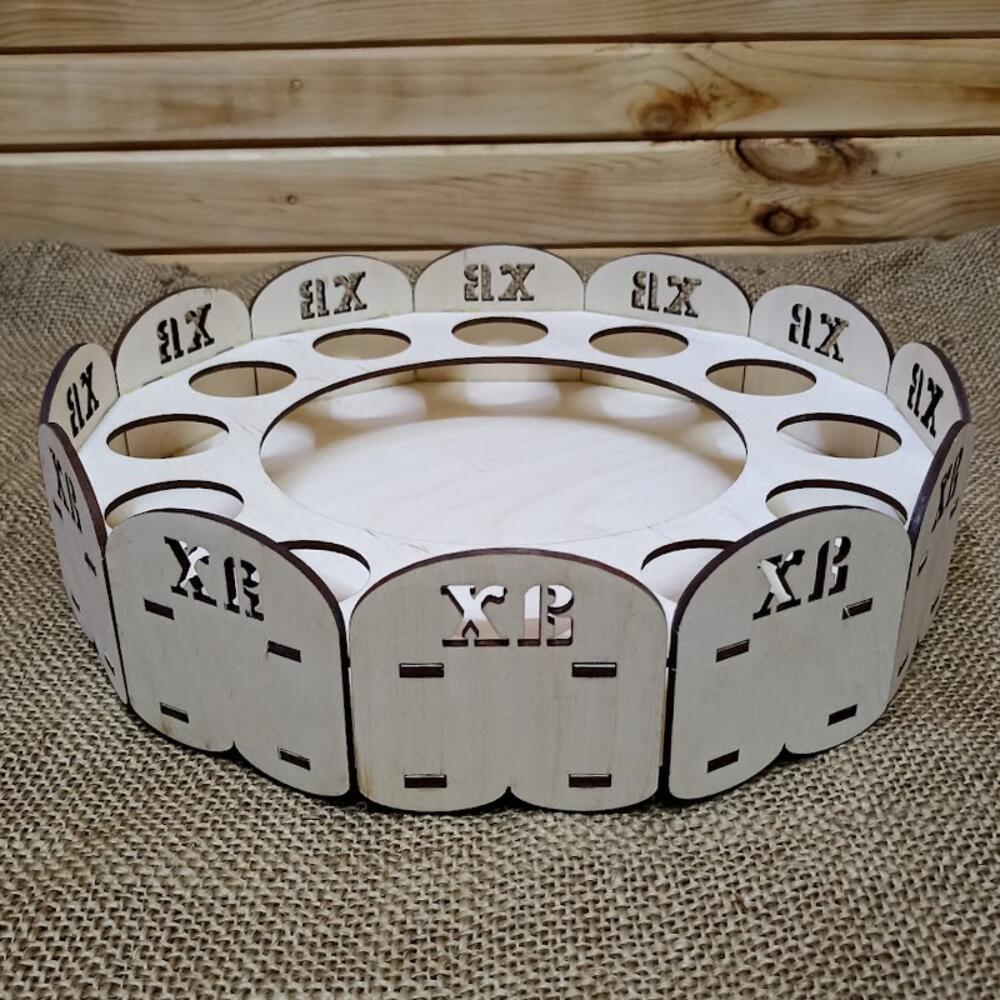 Пасхальная подставка из березовой фанеры – это практичное и стильное решение для сервировки праздничного стола. Она имеет ячейки для пасхальных яиц и углубление в центре для кулича, что позволяет компактно и красиво разместить традиционные пасхальные угощения. Изготовленная из экологичной березовой фанеры, подставка обладает прочностью и долговечностью. Натуральный цвет и текстура дерева придают ей теплоту и естественность, а лаконичный дизайн позволяет ей гармонично вписаться в любой интерьер. Пасхальная подставка – это не только функциональный элемент сервировки, но и стильный аксессуар, который подчеркнет праздничную атмосферу и создаст особое настроение. Она станет прекрасным дополнением к пасхальному столу и будет радовать глаз своим изящным дизайном. Изделие выполнено только из экологичных материалов. Размер (Ш * Г * В): 29 * 29 * 8 см